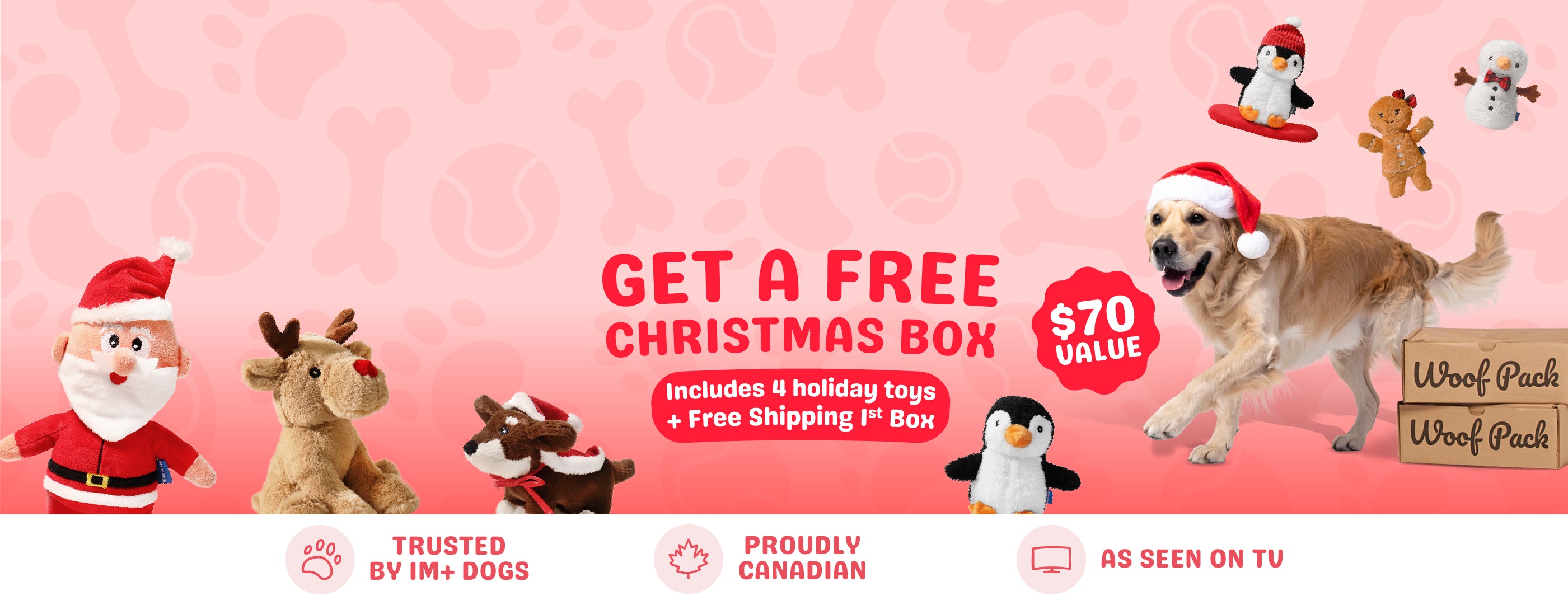Woof Pack is Canada’s #1 dog subscription box, delivering the perfect mix of all-natural Canadian-made treats and unique toys tested by real dogs. Every product meets strict Canadian standards, so you can trust what goes into your pup’s box each month.