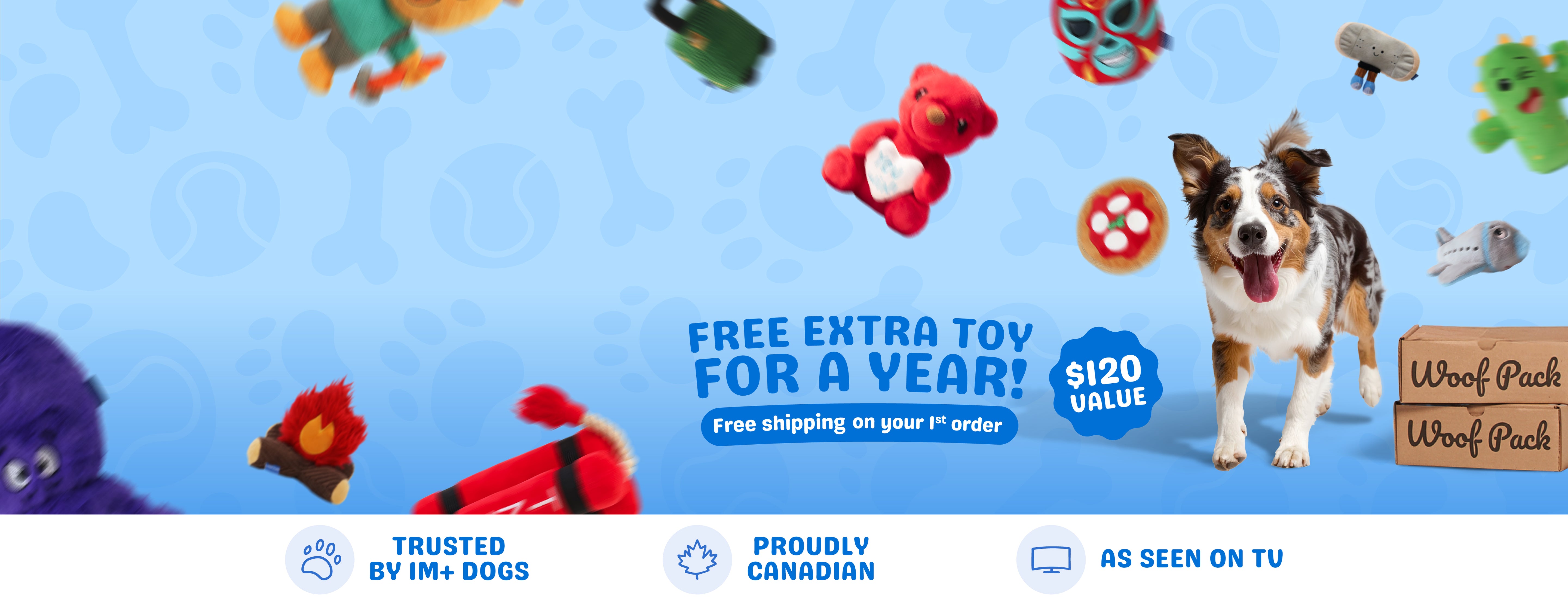 Yes! Each Woof Pack can be customized based on your dog’s size and chewing style. Whether your pup is small, medium, large, or a heavy chewer, we make sure their box includes the right mix of safe, durable toys and all-natural Canadian-made treats. Every Woof Pack is tailored to keep playtime fun and worry-free