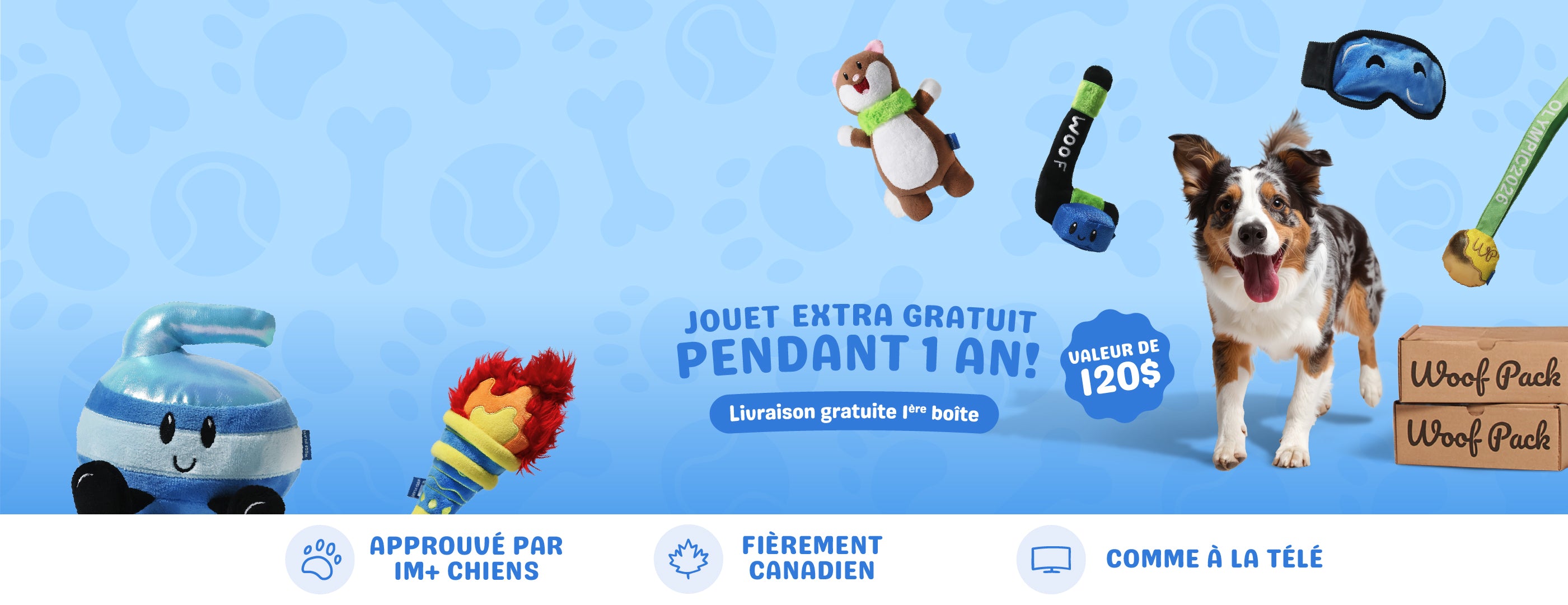 Pourquoi choisir Woof Pack : la boîte d’abonnement mensuelle #1 pour chiens au Canada