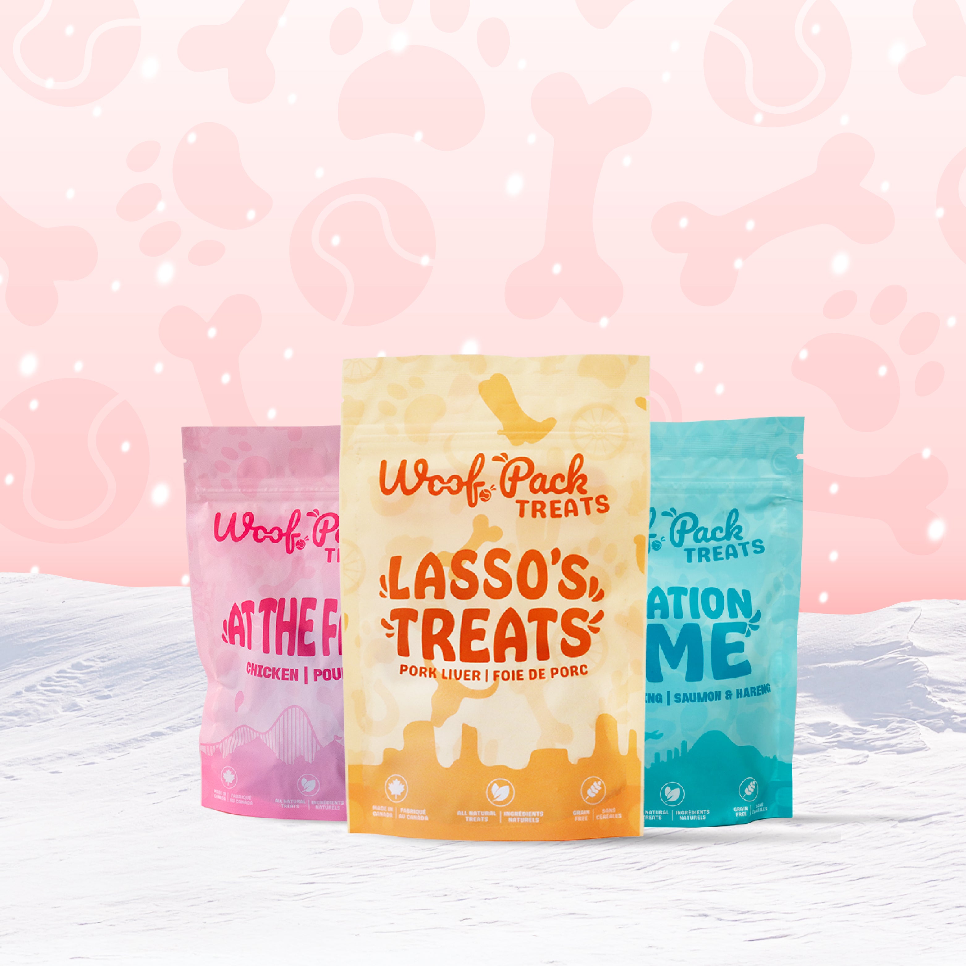 Oui ! Chaque Woof Pack contient des gâteries canadiennes 100 % naturelles, fabriquées avec des ingrédients sûrs et de haute qualité, sans agents de remplissage. Nous collaborons uniquement avec des fournisseurs de confiance respectant les normes canadiennes, afin que chaque gâterie soit saine, sécuritaire et délicieuse pour votre chien.