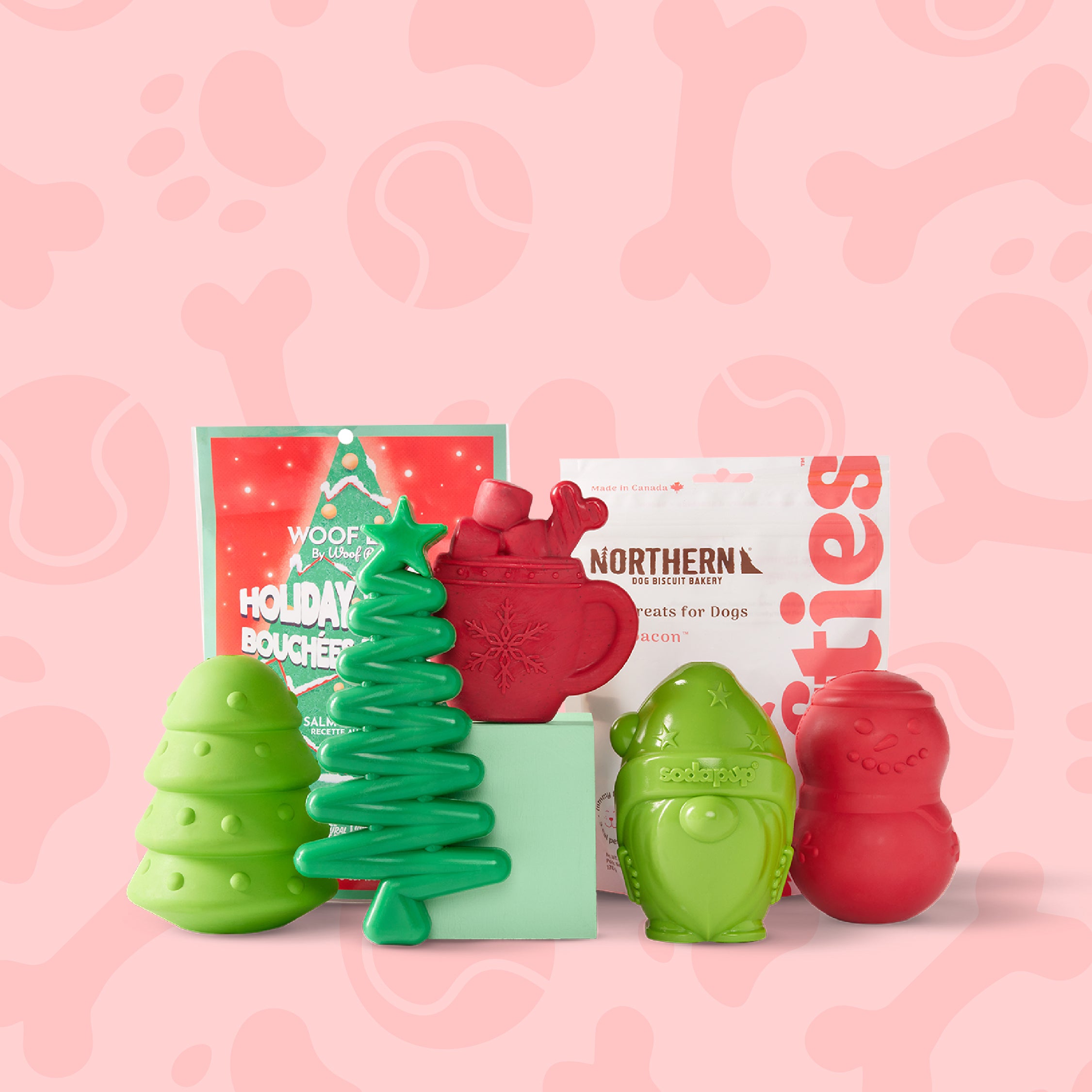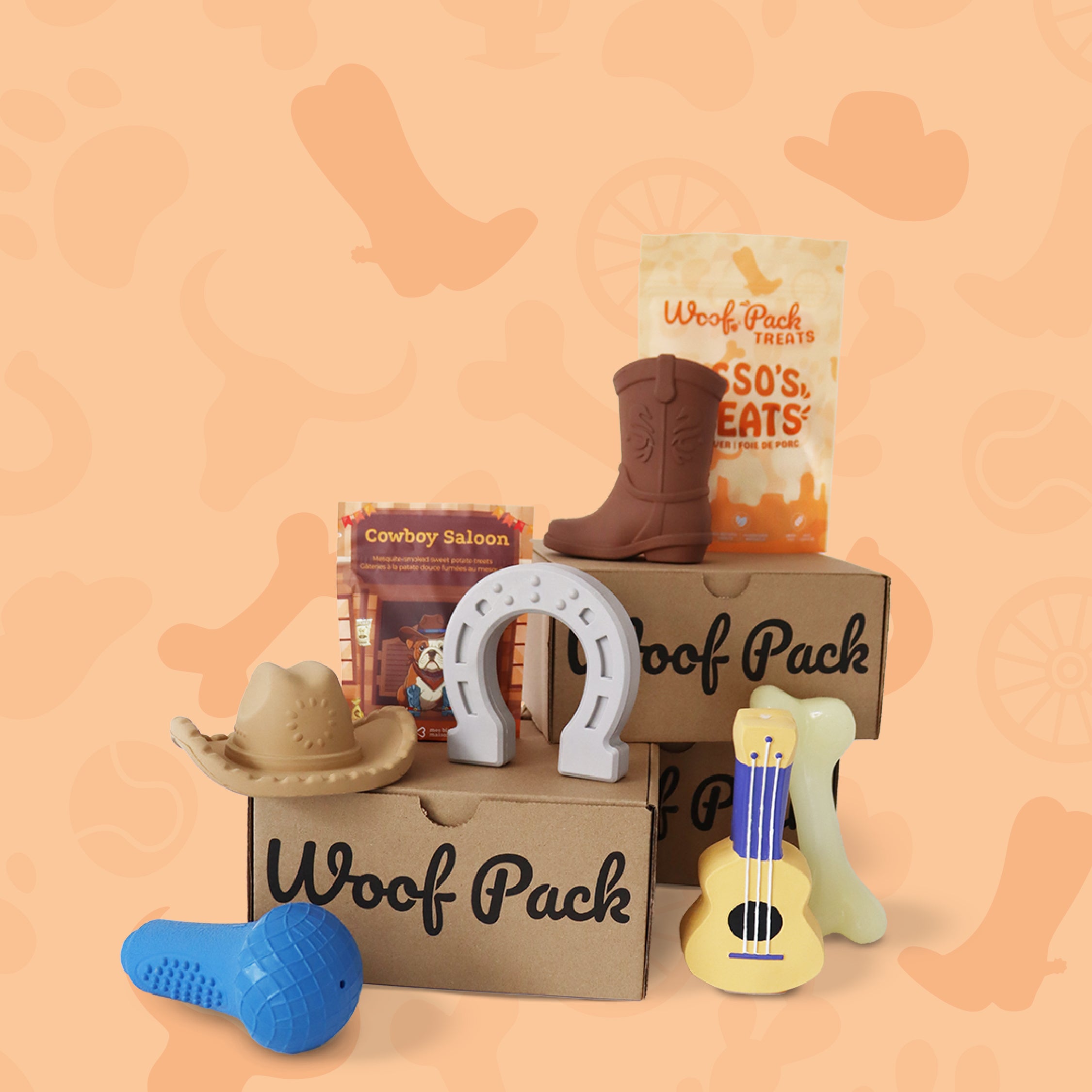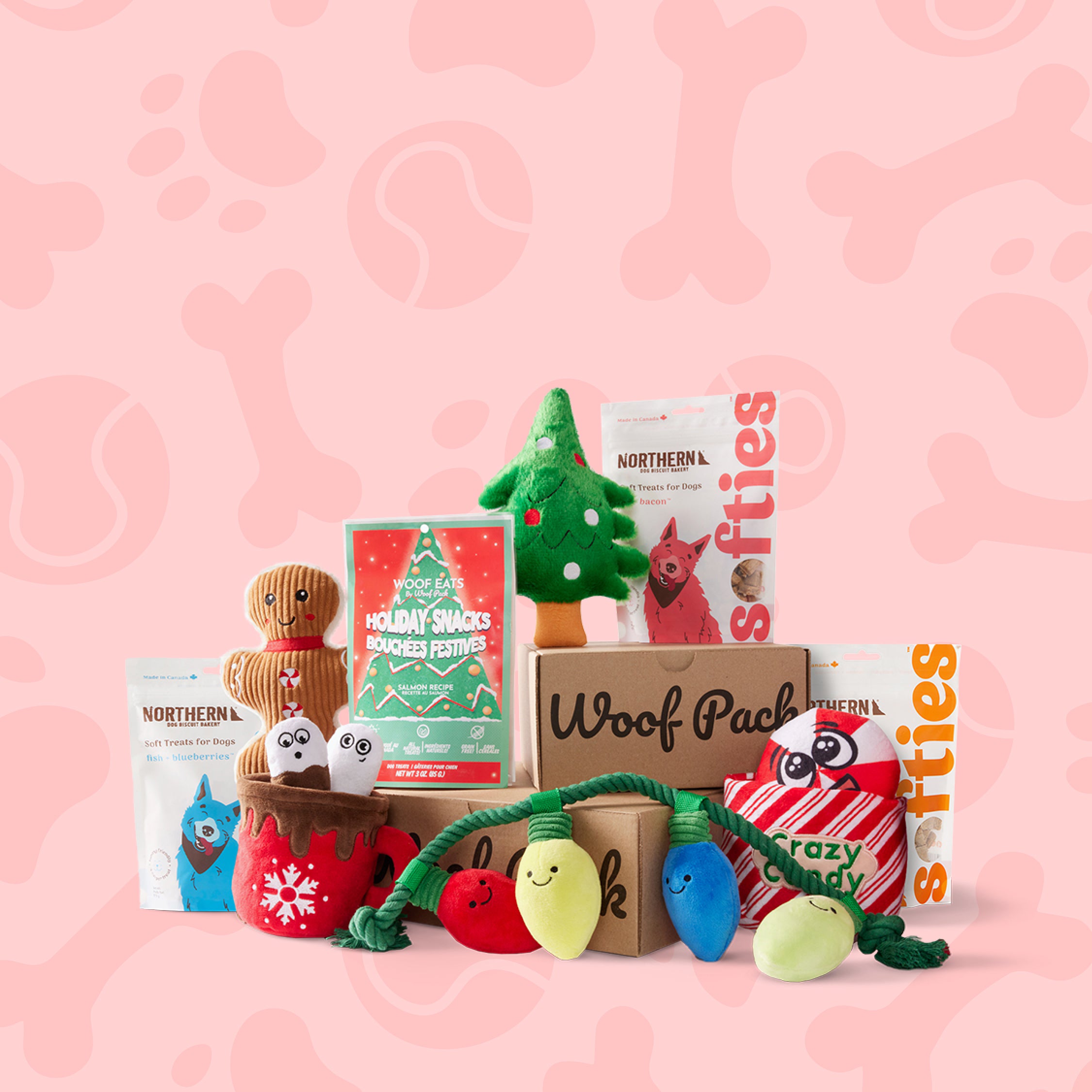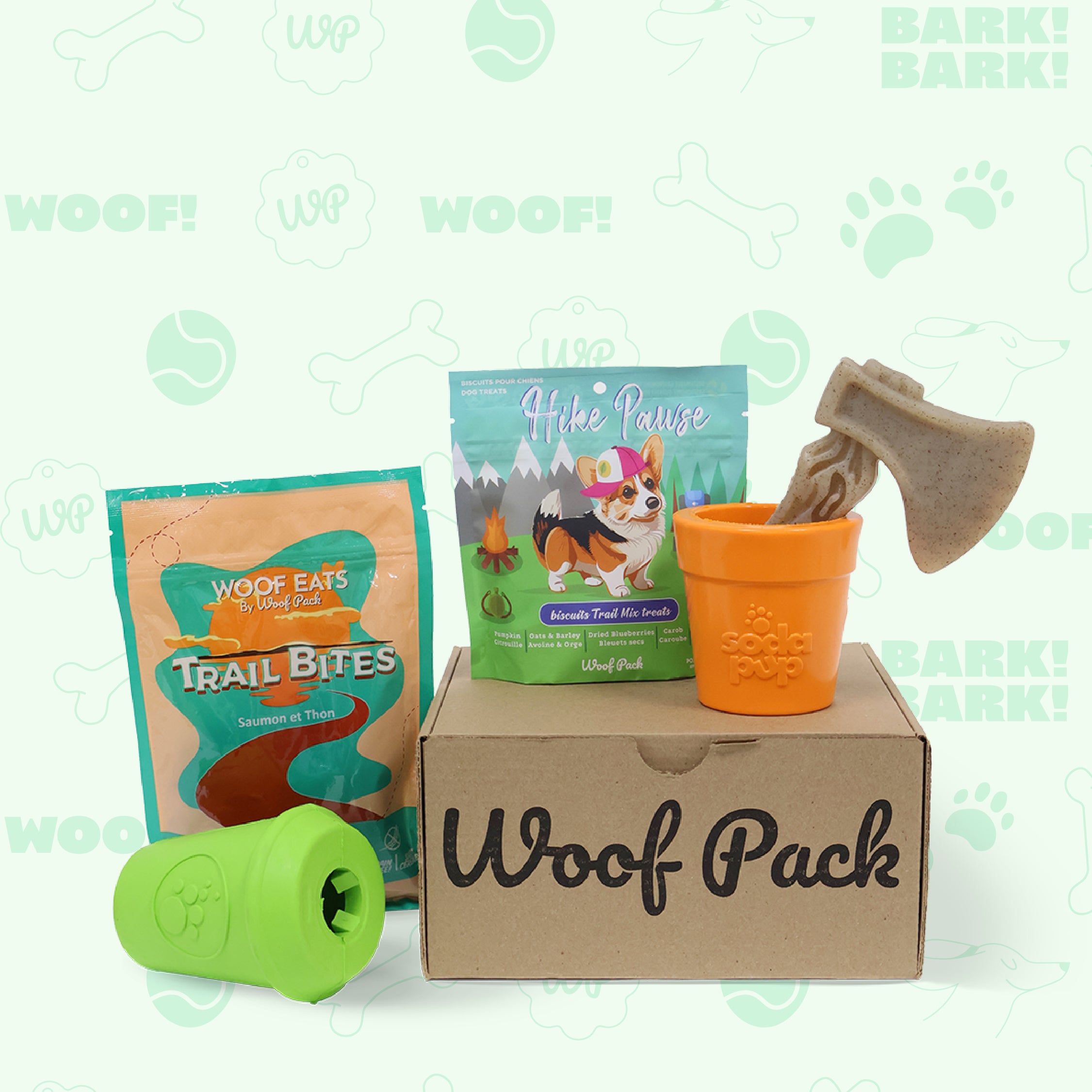 La Boîte Woof Pack régulière comprend des jouets et des gâteries amusants autour de thèmes variés, tandis que la Boîte Durable est conçue pour les chiens à la mâchoire puissante. Elle contient des jouets à l’épreuve des mâchouilleurs, fabriqués avec des matériaux plus solides, ainsi que des gâteries durables qui satisfont sans se désagréger trop vite.