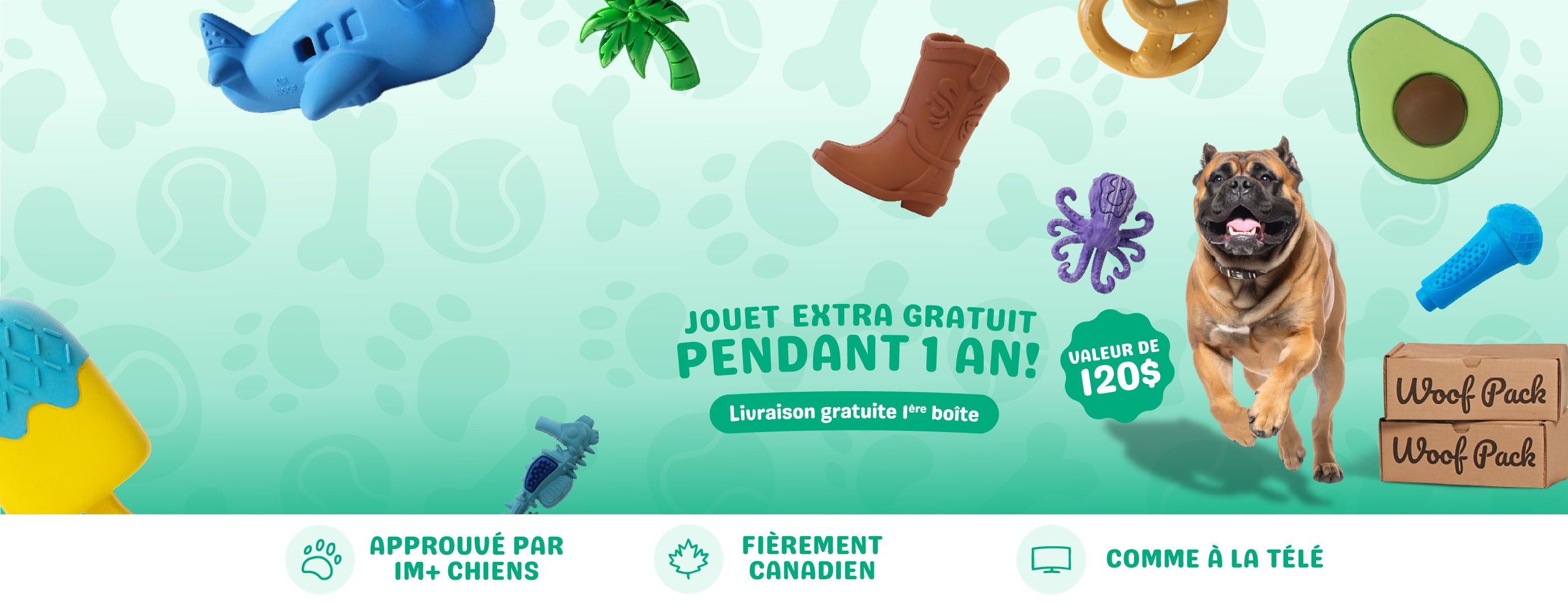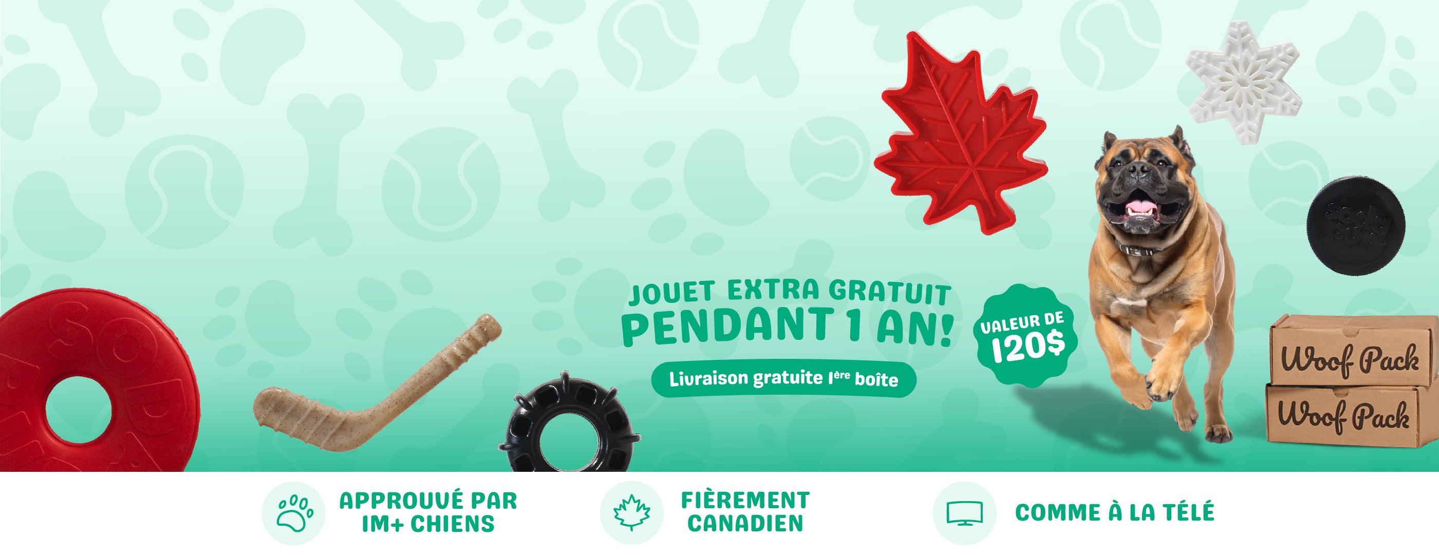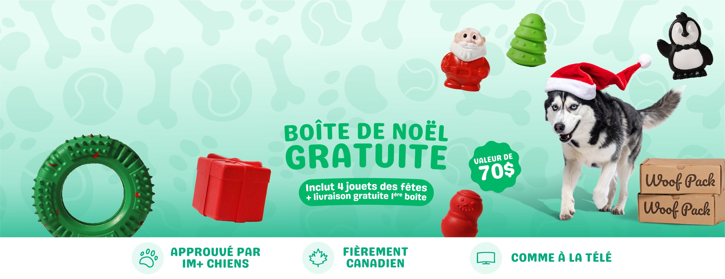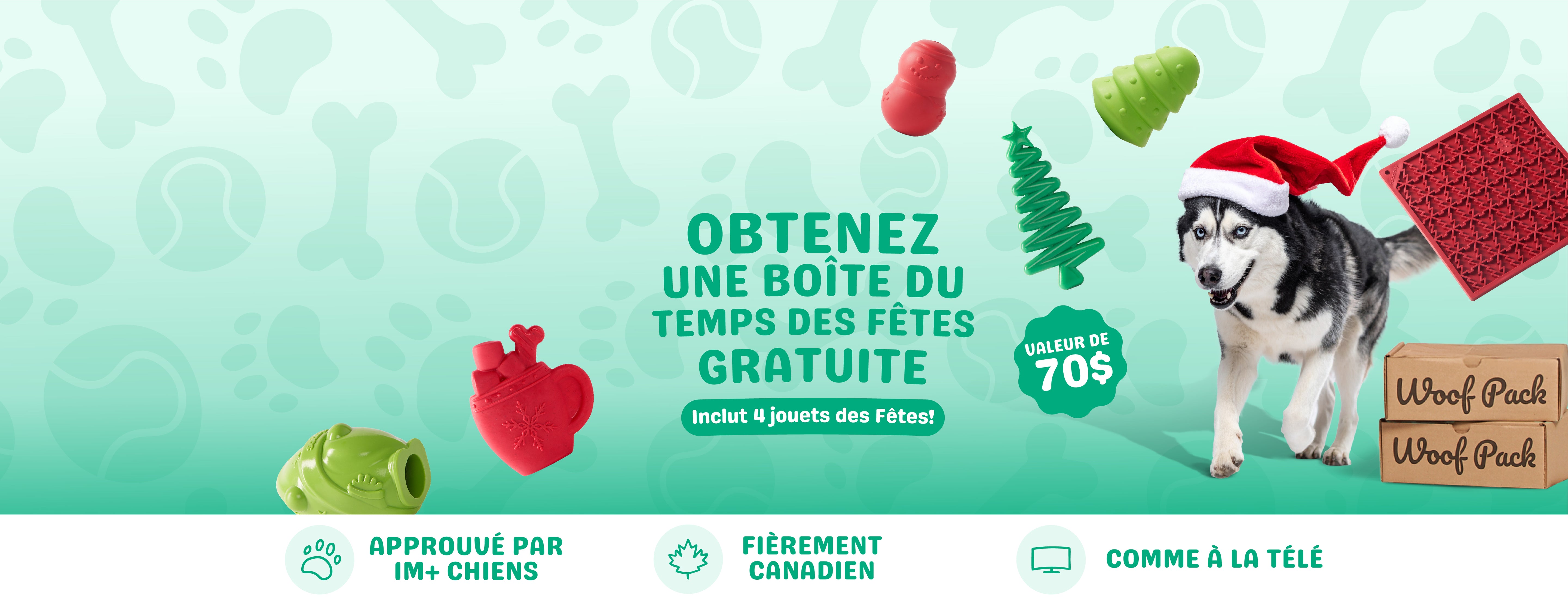 La Boîte Woof Pack régulière comprend des jouets et des gâteries amusants autour de thèmes variés, tandis que la Boîte Durable est conçue pour les chiens à la mâchoire puissante. Elle contient des jouets à l’épreuve des mâchouilleurs, fabriqués avec des matériaux plus solides, ainsi que des gâteries durables qui satisfont sans se désagréger trop vite.